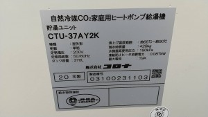 綾川町 コロナエコキュート交換工事 CTU-37AY2K ヒートポンプ給湯器