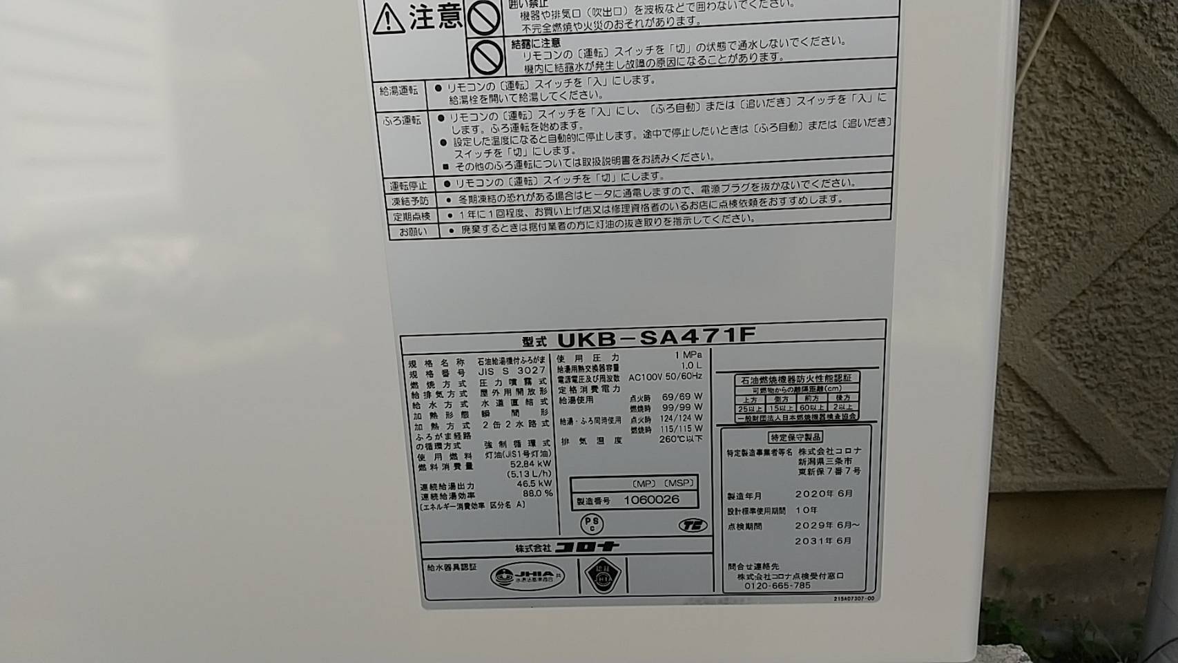 坂出市 石油給湯機付ふろがまUKB-SA471F